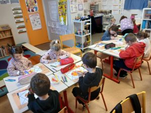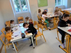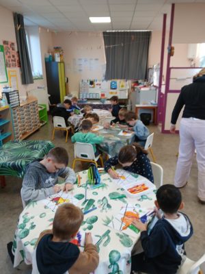 Ce vendredi 17 octobre, les élèves de l’école ont été répartis en cinq équipes en mélangeant les niveaux de classe. Ils ont démarré la matinée par un atelier d’arts plastiques dans lequel ils ont colorié leur animal préféré avec les couleurs chaudes et les couleurs froides. Leurs oeuvres seront exposées dans la cantine. Après la récréation, ils ont expérimenté le jeu de l’UGSEL « Bouge avec les régions » à la recherche des animaux des régions de France. Ce fut une matinée riche en collaboration, partage et échanges …